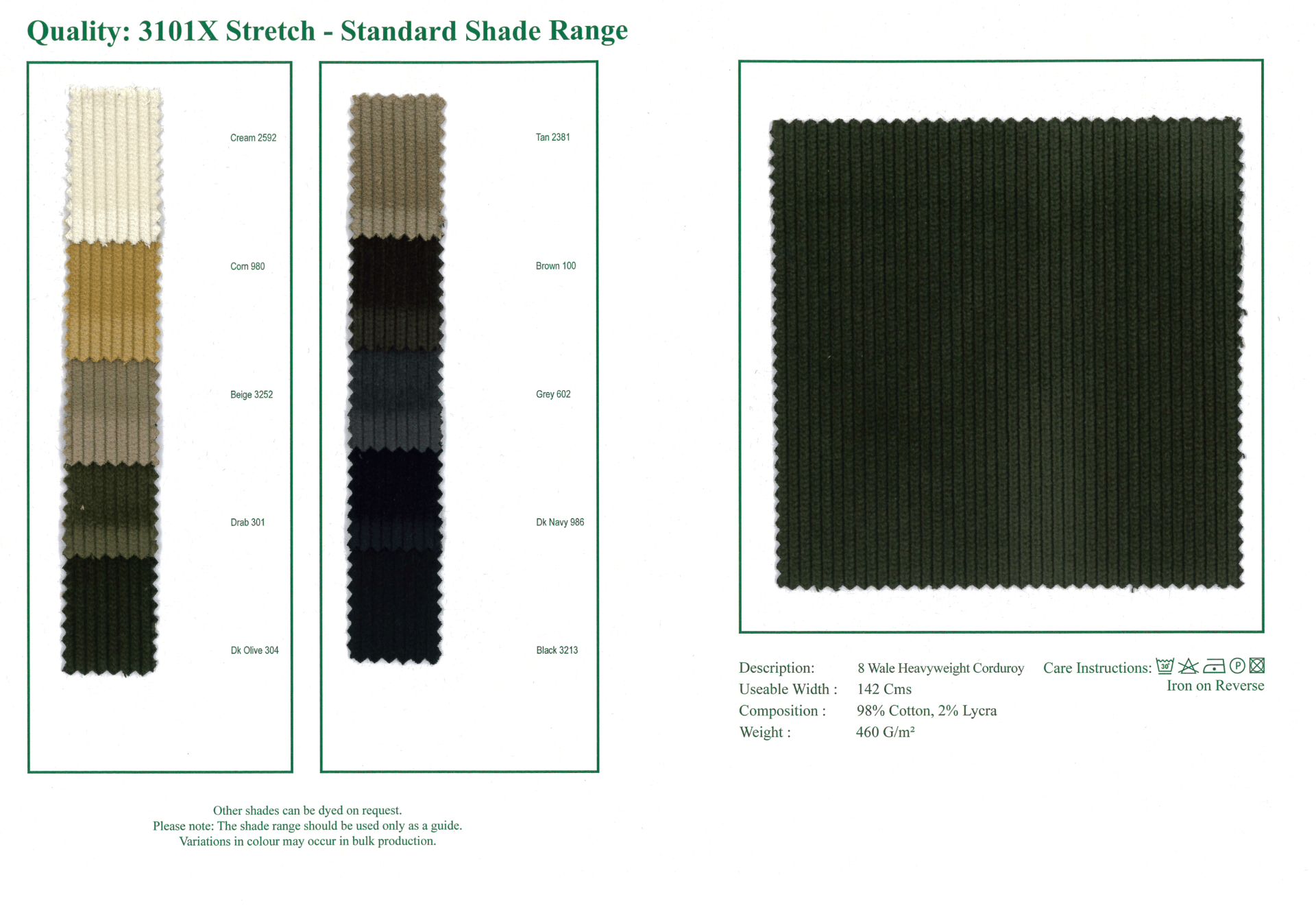 3101X STRETCH Shade Card